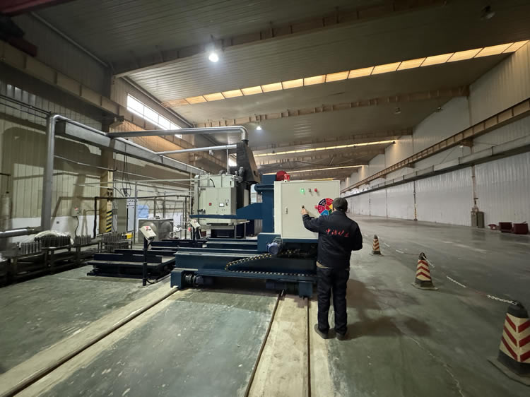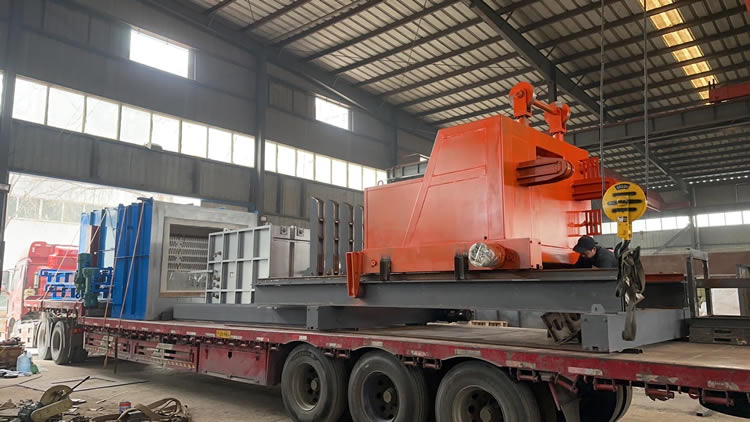 4、回火裝爐:瀝水完成后——料筐轉(zhuǎn)移到回火爐爐口——爐門開啟——中轉(zhuǎn)車把工件送入回火爐膛——中轉(zhuǎn)車自動退出——爐門關閉——裝爐工作完成。