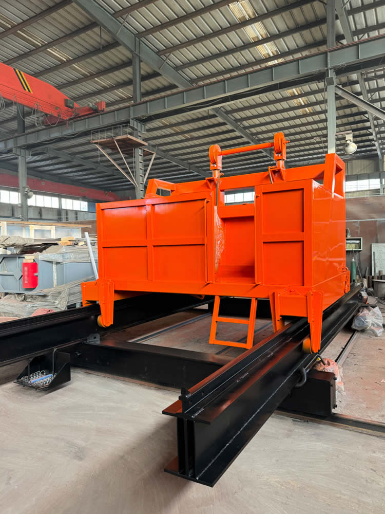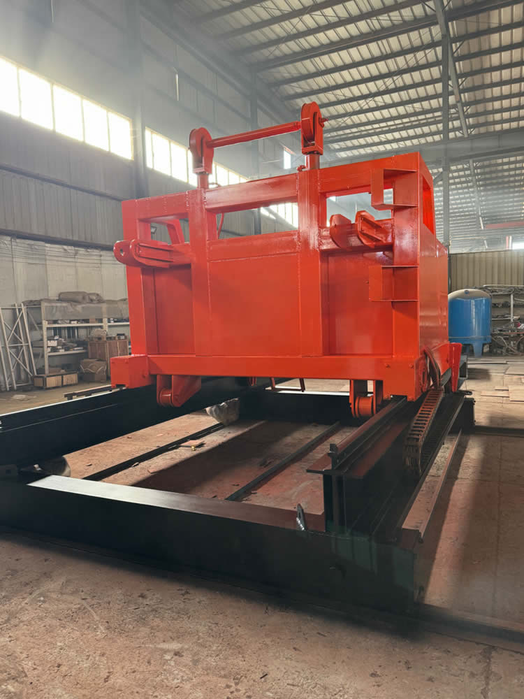 2、淬火裝爐:把料筐吊到裝料平臺(tái)上(只需要操作一次)——人工把工件裝入料筐(需方自備)后——按動(dòng)放料按鈕——中轉(zhuǎn)車從裝料平臺(tái)上叉取料筐上升50mm——中轉(zhuǎn)車后退——中轉(zhuǎn)車移向淬火爐位置——淬火爐門開啟——中轉(zhuǎn)車把工件送入爐膛——中轉(zhuǎn)車自動(dòng)退出——爐門關(guān)閉——加熱爐啟動(dòng)加熱——裝爐工作完成。